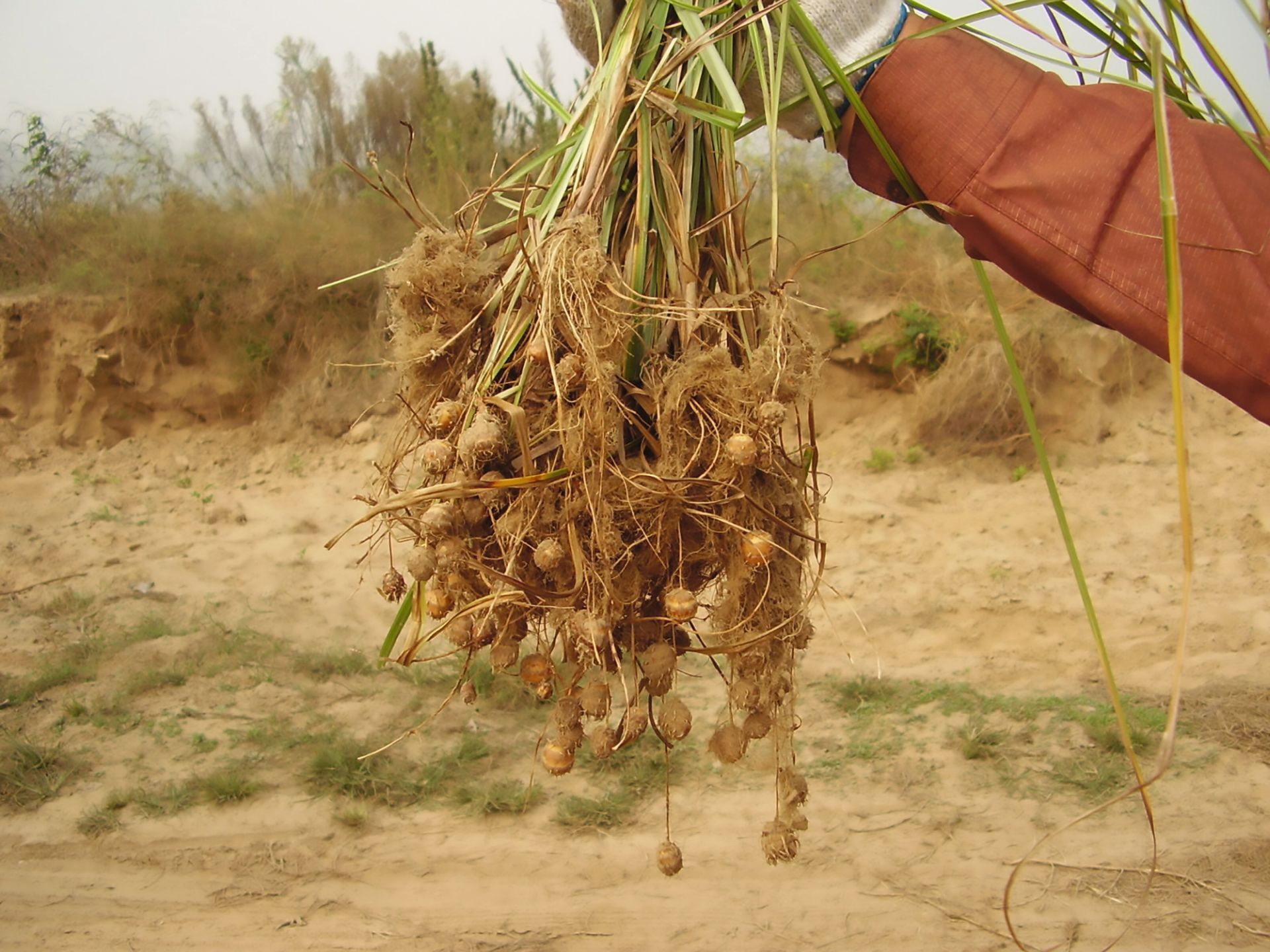 Die Erdmandel-Pflanze „Cyperus esculentus“, auch bekannt als Tigernuss oder Chufa, ist nicht etwa eine Nuss. Botanisch gesehen gehört sie zur Familie der Zyperngräser. Sie wächst, ähnlich wie Kartoffeln, in kleinen Knöllchen an den Wurzeln der Pflanze heran. Bereits die alten Ägypter mochten den leicht süßlichen, vanilleartigen Geschmack der Erdmandel.