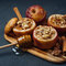 - Kürbis halbieren, Kerne entfernen, grob würfeln.