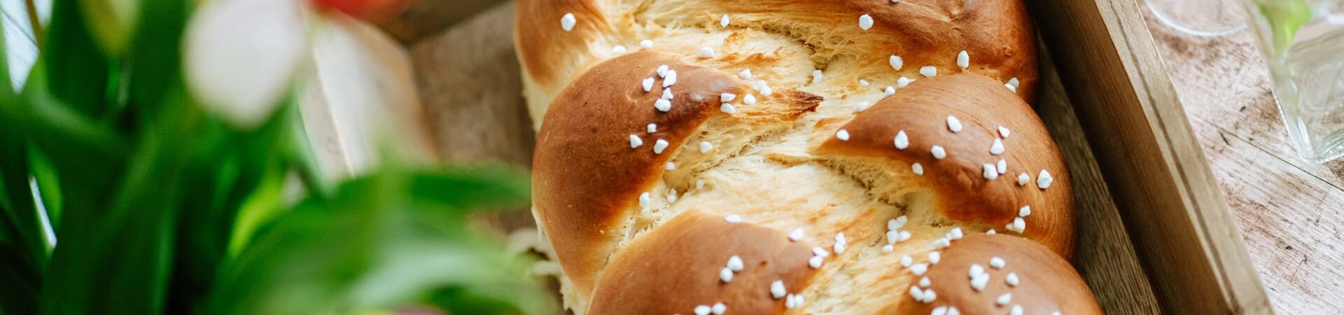 - Den Ofen auf 190 °C Umluft vorheizen, in einem Gefäß kaltes Wasser hineinstellen. Die Zöpfe je nach Größe für ca. 16 – 18 Min. backen. Auf einem Kuchengitter auskühlen lassen.