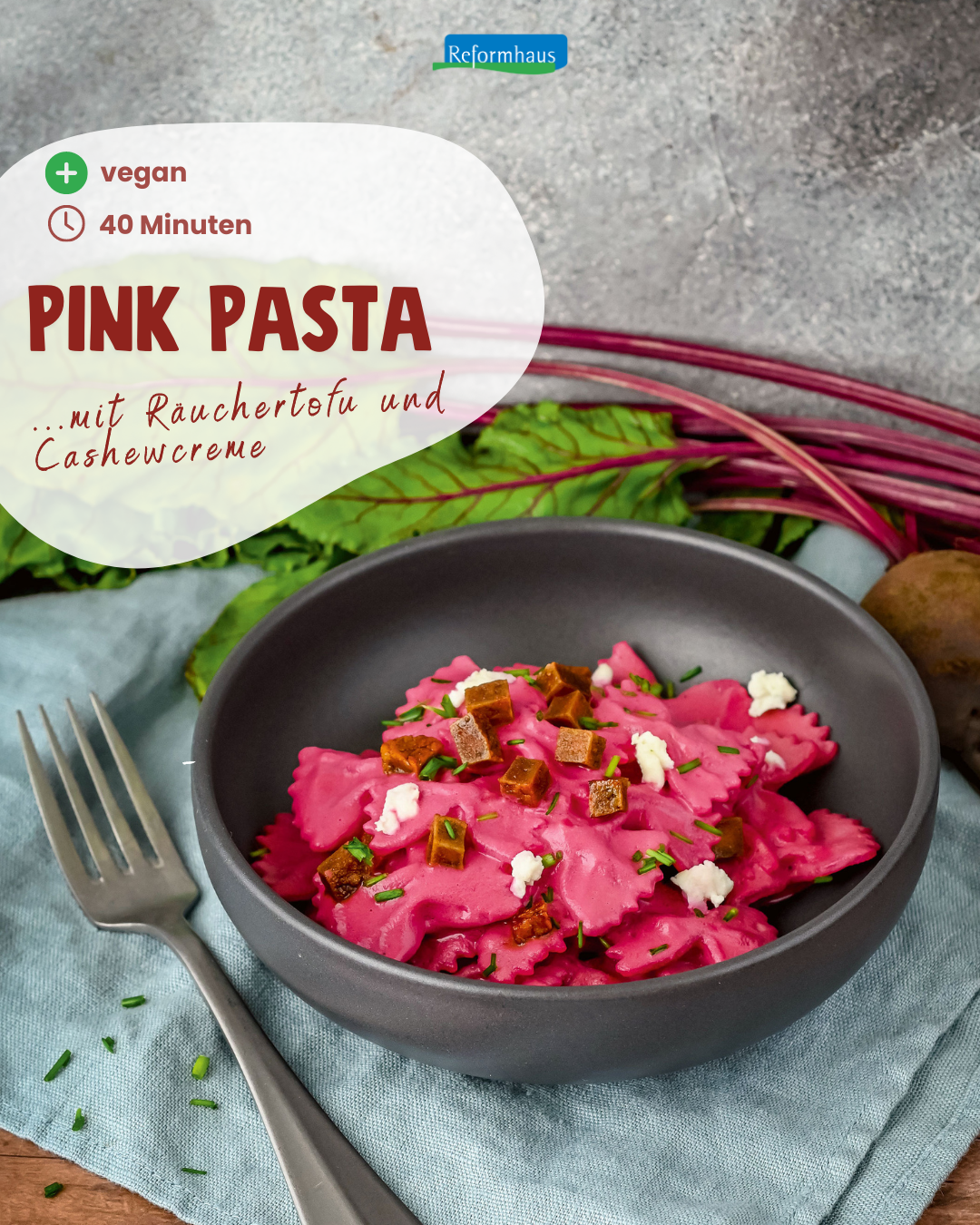 Rote Bete und würzige Misopaste machen es möglich: Diese Pink Pasta ist nicht nur intensiv in der Farbe, sondern auch im Geschmack. Probieren lohnt sich! Dank Mandelmilch und Cashewkernen verwöhnt uns dieses Gericht mit einer käsig-cremigen Soße und hält besonders lange satt.