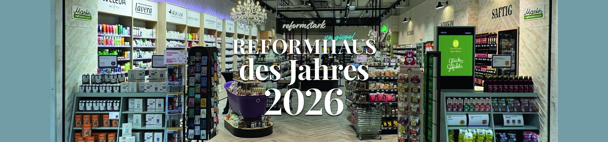 Einmal im Jahr zeichnet die Reformhaus eG bzw. eine fachkundige Jury aus Expert:innen und Praktiker:innen in verschiedenen Kategorien das REFORMHAUS DES JAHRES aus. In der Kategorie Gesamteindruck Filialist wurde 2026 die reformstark Martin Filiale in der PlusCity in Pasching ausgezeichnet.