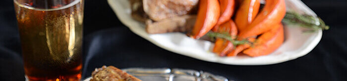 Wenn die Zeit um ist, eine Roulade pro Person mit ein paar Kürbisscheiben auf einem schönen Teller servieren.