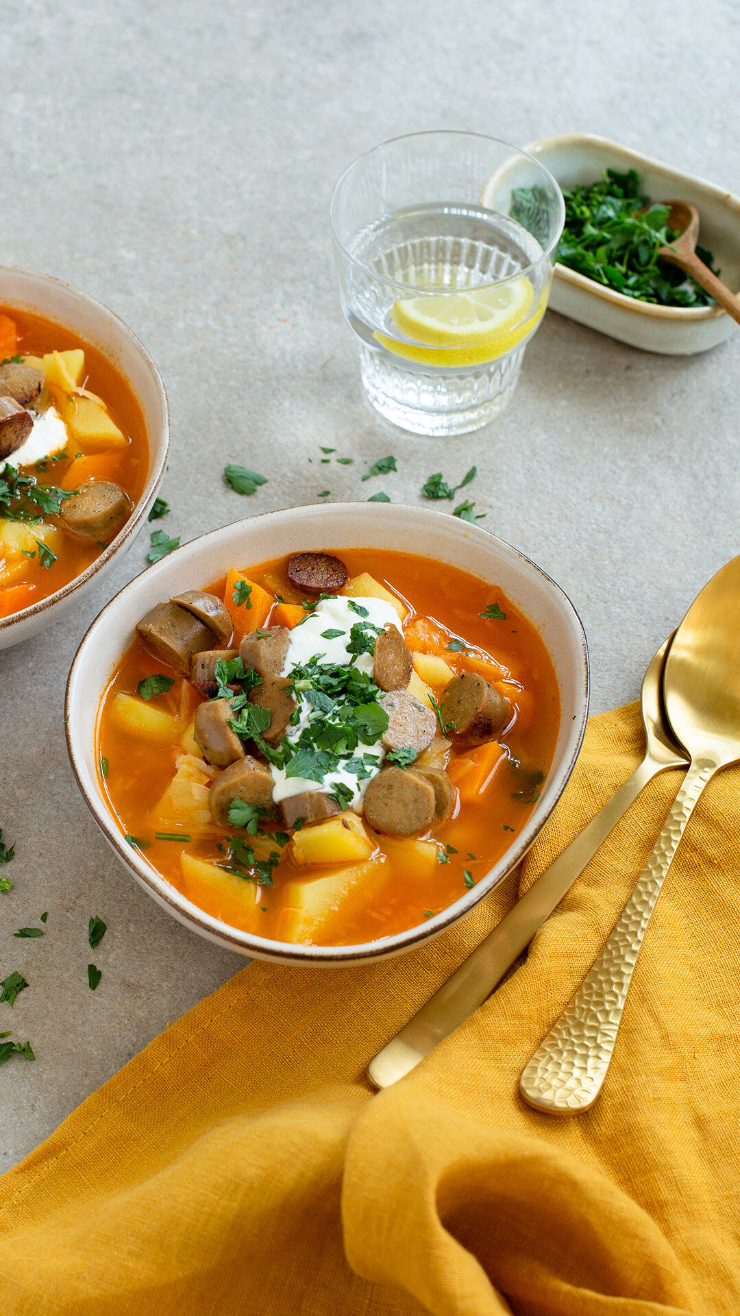 Quelle: https://eatsmarter.de/rezepte/sauerkraut-kartoffel-eintopf-mit-veggie-wuerstchen-0