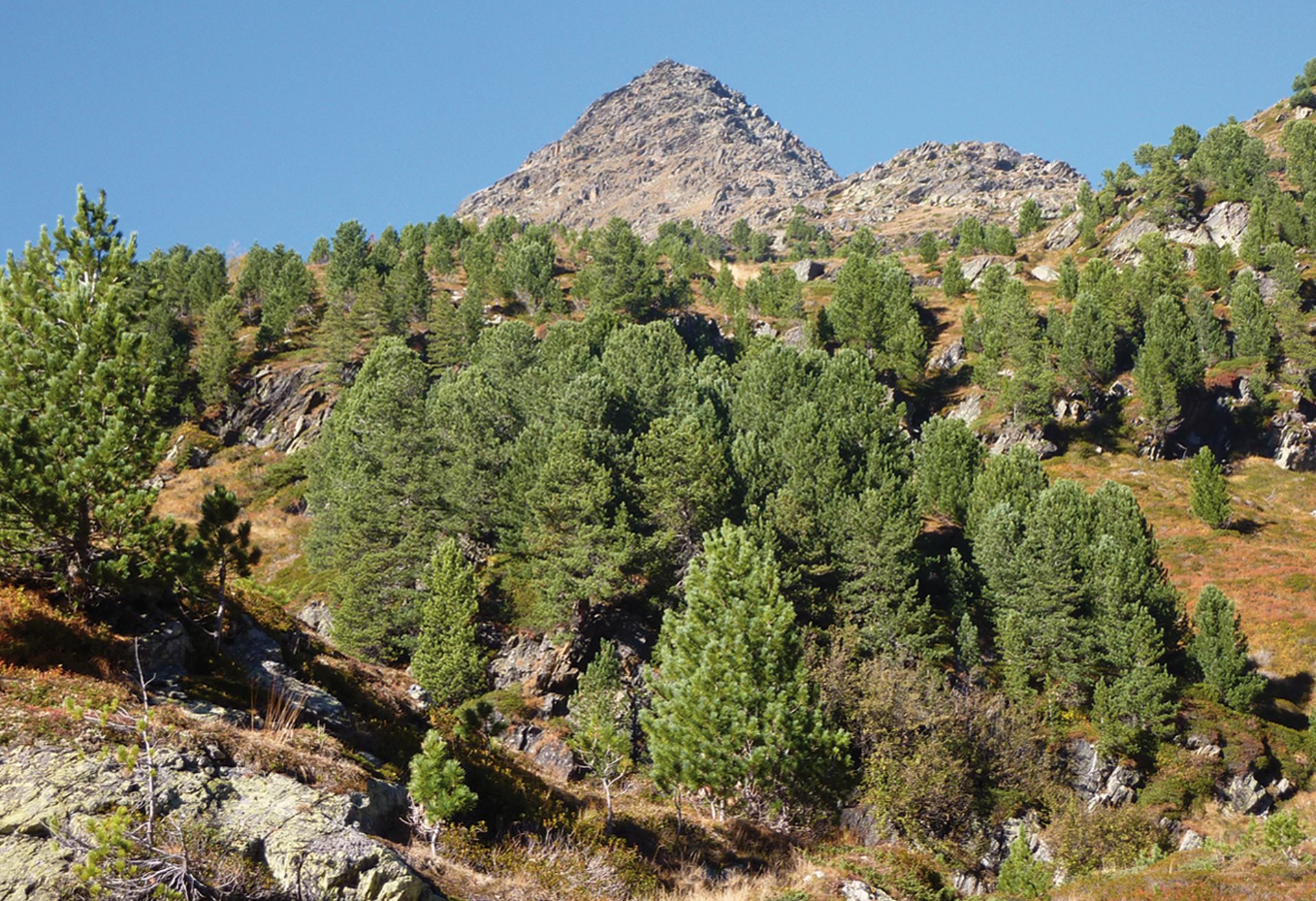 Die Zirbelkiefer ist ein alpiner Baum, der sich durch ein sehr langsames und nachhaltiges Wachstum unter widrigsten Umgebungsbedingungen auszeichnet. Die Zirbe wächst im Alpenraum erst ab einer Höhe von 1.400 m und höher. Sie kann bis zu 20 m hoch werden und ein Alter von bis zu 1.000 Jahren erreichen. Wegen ihrer Anpassungsfähigkeit und dem Vorkommen im hochalpinen Raum gilt die Zirbe, auch Arbe oder Arve genannt, als die “Königin der Alpen”. Sehr große Vorkommen dieses Nadelbaumes gibt es südlich des Alpenhauptkammes.