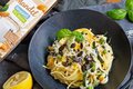 In dieser One-Pot-Pasta mischen sich reichlich Gemüse, schwarze Linsen und Kürbiskerne in einer zitronigen Sauce aus Mandelmilch. Wunderbar…